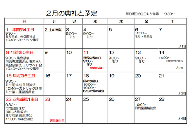 *月に一度、市内4教会の合同ミサがあります